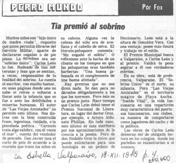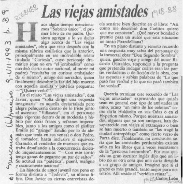 Autores chilenos - León, Carlos - Sueldo vital - "Sobrino único" - "Las viejas amistades"