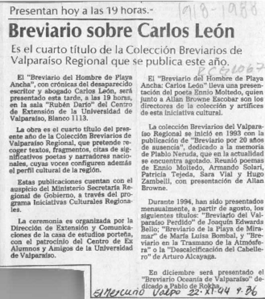 Carlos León, la breve obra del hombre de Playa Ancha [artículo] Mario E. Banic.