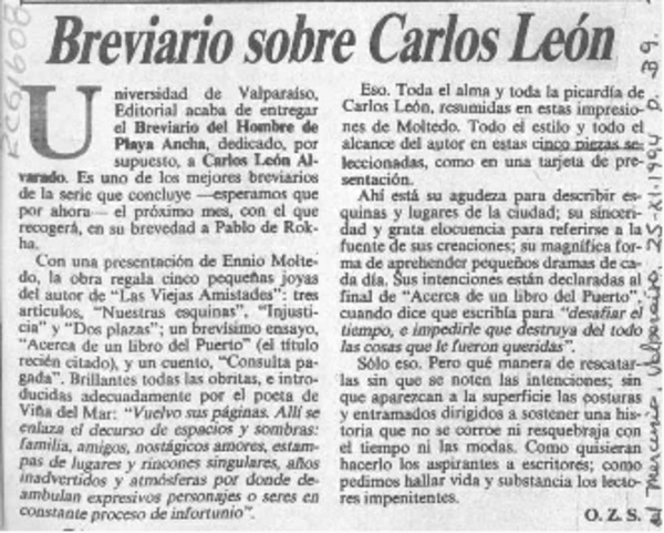Breviario sobre Carlos León [artículo] O. Z. S.