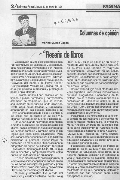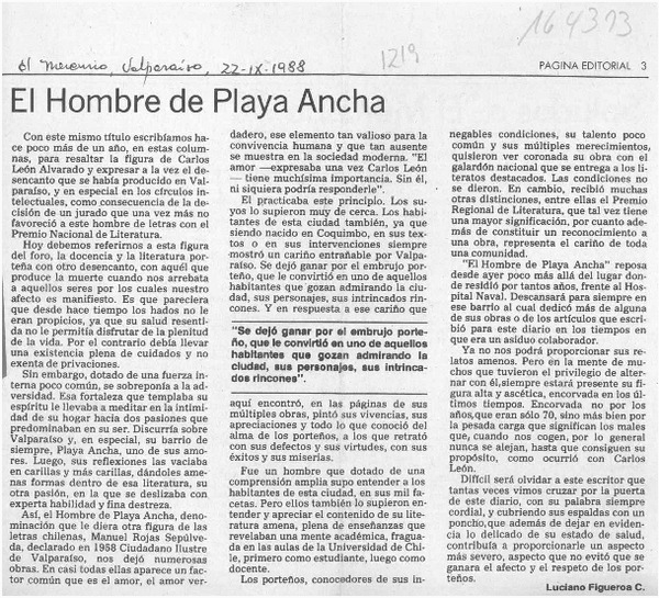 Carlos León, el hombre de Playa Ancha [artículo] José Vargas Badilla.