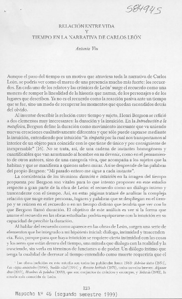 Relación entre vida y tiempo en la narrativa de Carlos León [artículo] Antonia Viu.