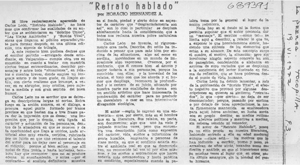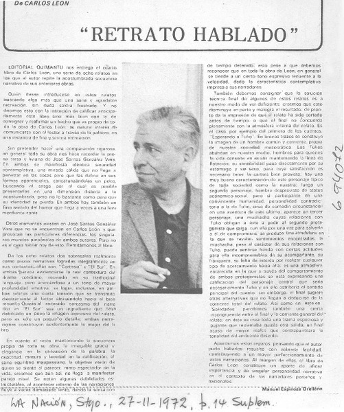 Retrato hablado" [artículo] Manuel Espinoza Orellana.