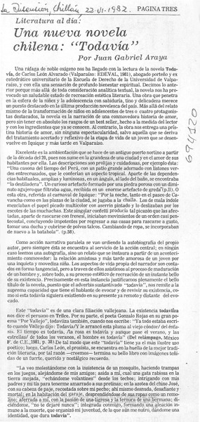 Una nueva novela chilena "Todavía" [artículo] Juan Gabriel Araya.
