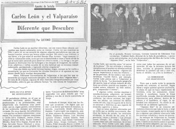 Carlos León y el Valparaíso diferente que descubre [artículo] Suetonio.