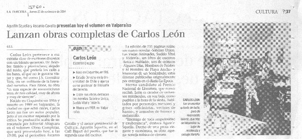 Lanzan obras completas de Carlos León [artículo] A.G.B.
