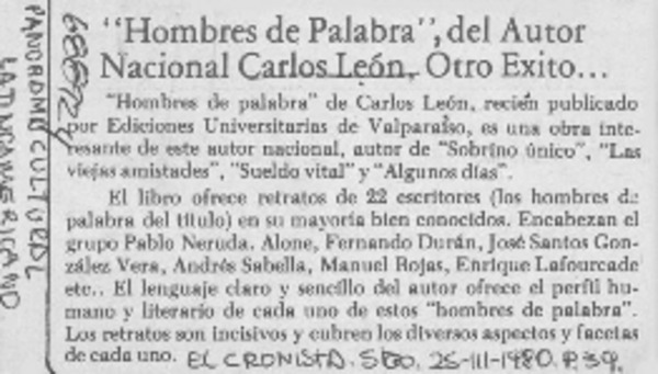 Autores chilenos - León, Carlos - "Hombres de palabra"