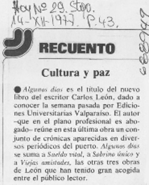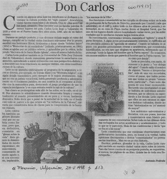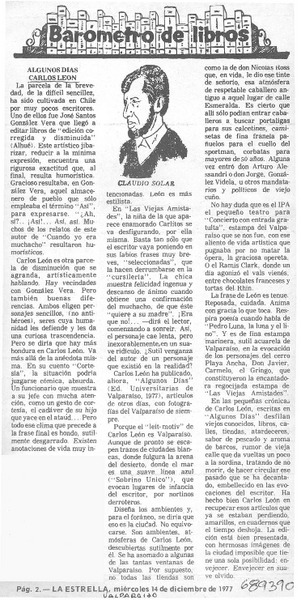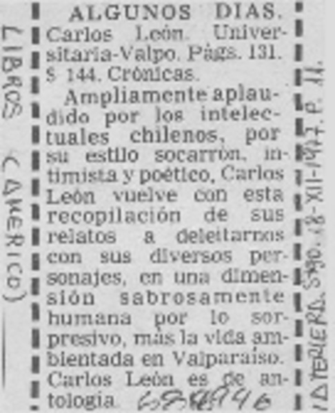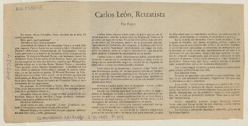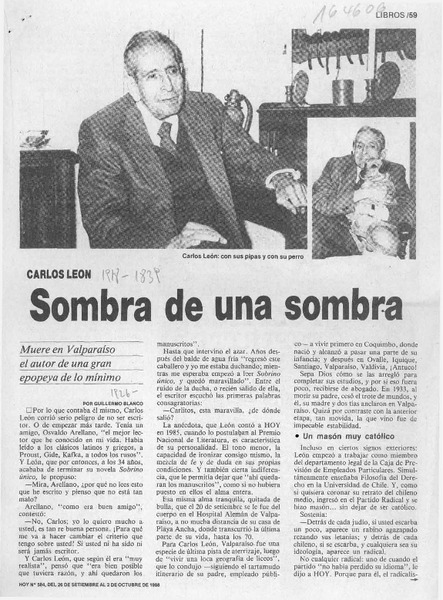 Carlos León, algunos días... [artículo] Hernán del Solar.