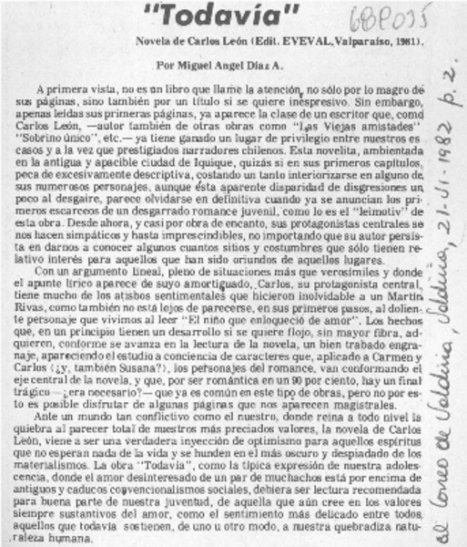 "Todavía" [artículo] Miguel Angel Díaz A.