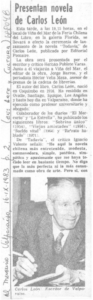 Presentan nueva obra de C. León [artículo] Lautaro.