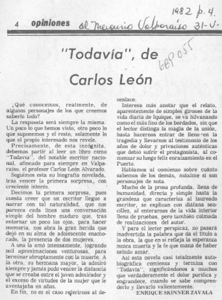 Todavía", de Carlos León [artículo] Enrique Skinner Zavala.
