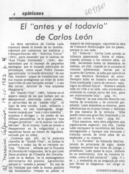 El "antes y el todavía" de Carlos León [artículo] Andrés Sabella.