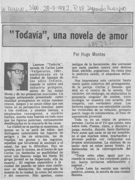 Todavía", una novela de amor [artículo] Hugo Montes.