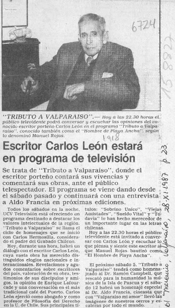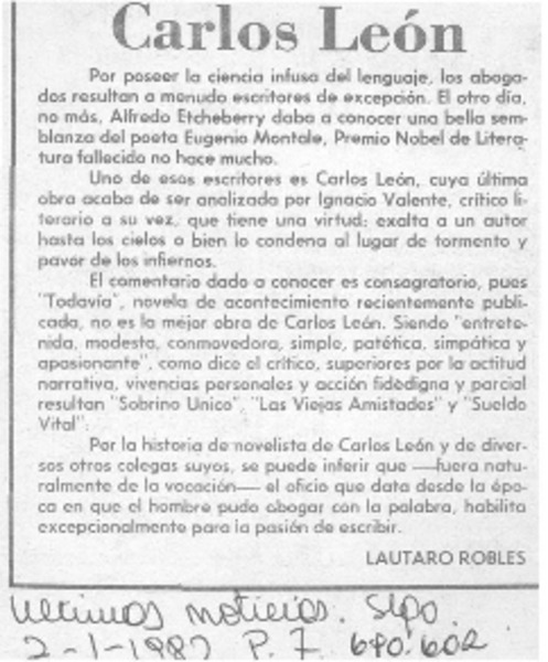 Carlos León, escritor [artículo] Rodolfo Garcés Guzmán.