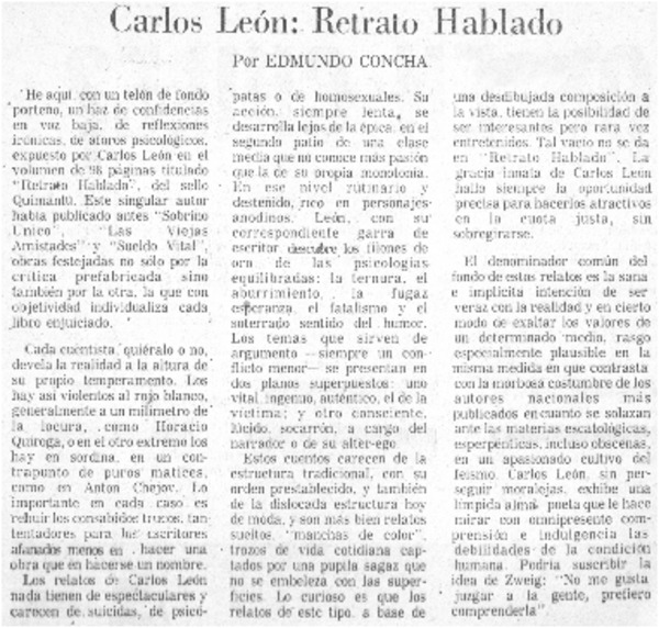 El estilo de Carlos León [artículo] Edmundo Concha.