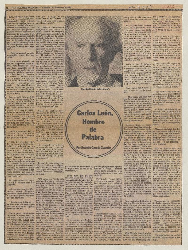 Carlos León, Hombre de palabra [artículo] Rodolfo Garcés Guzmán.