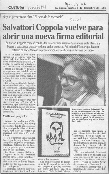 Salvattori Coppola vuelve para abrir una nueva firma editorial [artículo].