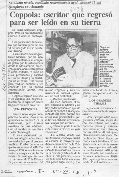 Coppola, escritor que regresó para ser leído en su tierra [artículo].