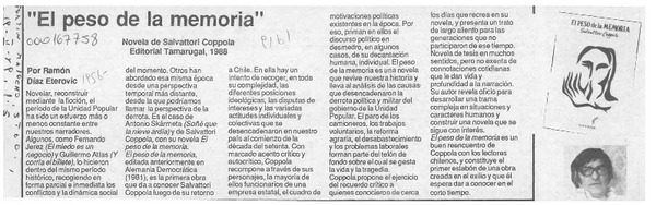 "El peso de la memoria" [artículo] Ramón Díaz Eterovic.