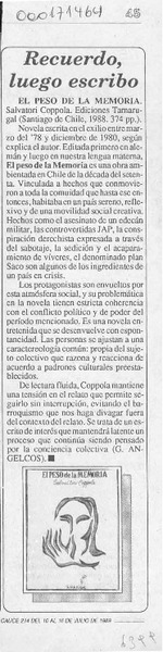Recuerdo, luego escribo [artículo] G. Angelcos.