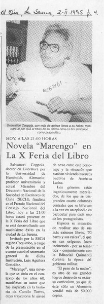 Novela "Marengo" en la X Feria del Libro [artículo].