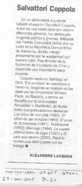 Salvattori Coppola [artículo]Alejandro Lavquen.