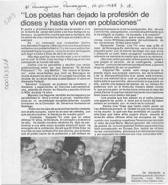 "Los poetas han dejado la profesión de dioses y hasta viven en poblaciones" [artículo].