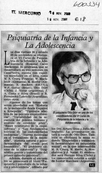 Premio Internacional de Psiquiatría al Dr. Otto Dörr [artículo]