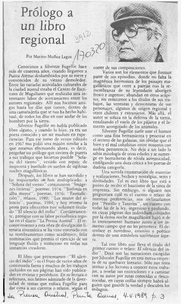 Prólogo a un libro regional [artículo] Marino Muñoz Lagos.