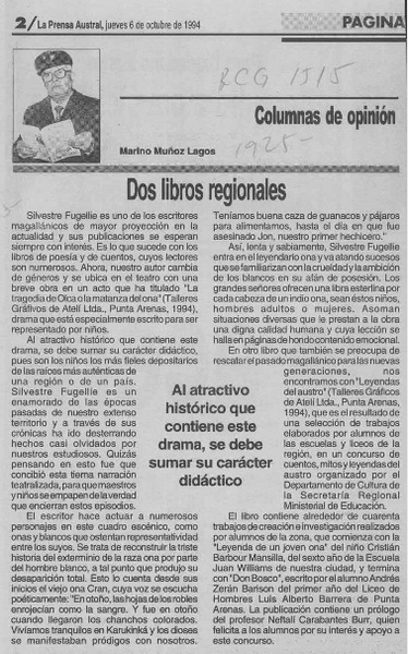Dos libros regionales [artículo] Marino Muñoz Lagos.