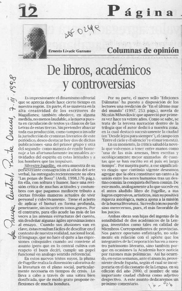 De libros, académicos y controversias [artículo] Ernesto Livavic G.