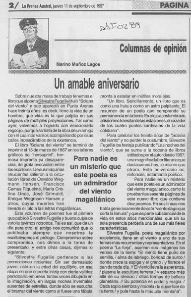 Un amable aniversario [artículo] Marino Muñoz Lagos.