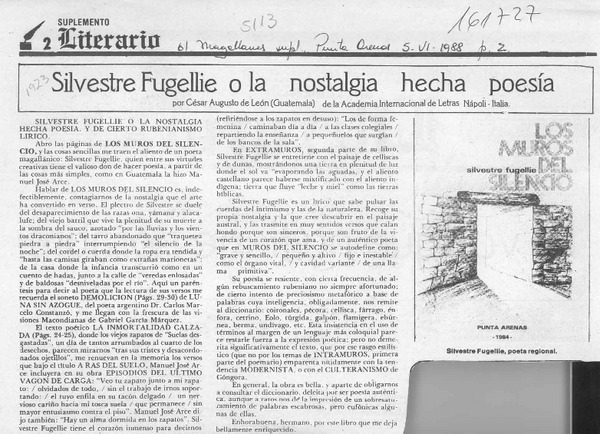 Silvestre Fugellie o la nostalgia hecha poesía [artículo] César Augusto de León.