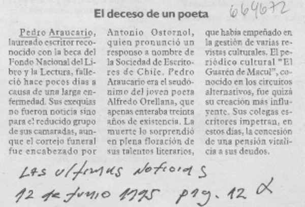 Poemas inéditos de Pedro Araucario [artículo] Jorge Montealegre.