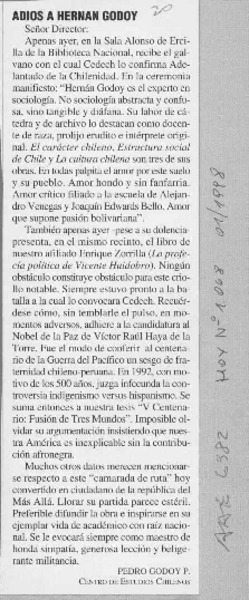 Adios a Hernán Godoy [artículo] Pedro Godoy P.