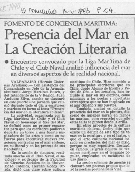 Presencia del mar en la creación literaria [artículo] Hernán Cisternas Arellano.