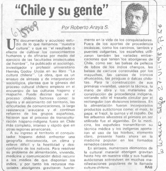 "Chile y su gente" [artículo] Roberto Araya S.