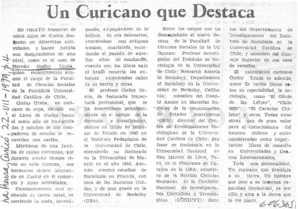 Un curicano que destaca. [artículo]