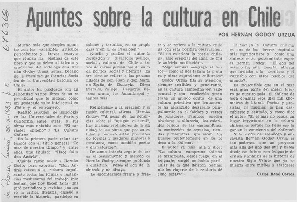 Apuntes sobre la cultura en Chile [artículo] Carlos René Correa.
