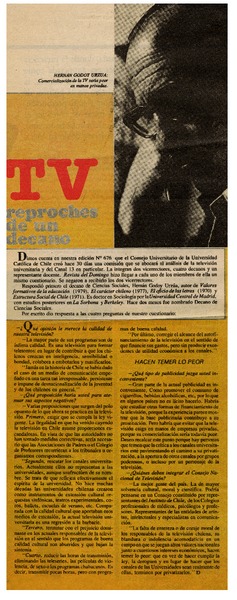 TV reproches de un decano: [entrevista] [artículo]