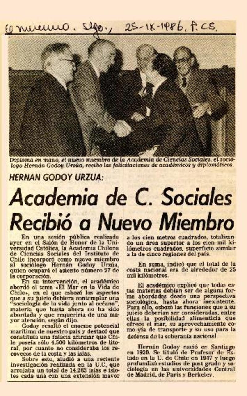 Academia de C. Sociales recibió a nuevo miembro [artículo].