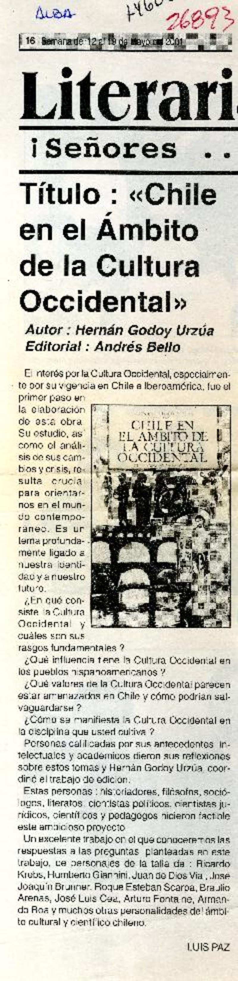 Chile en el ámbito de la cultura occidental" [artículo]
