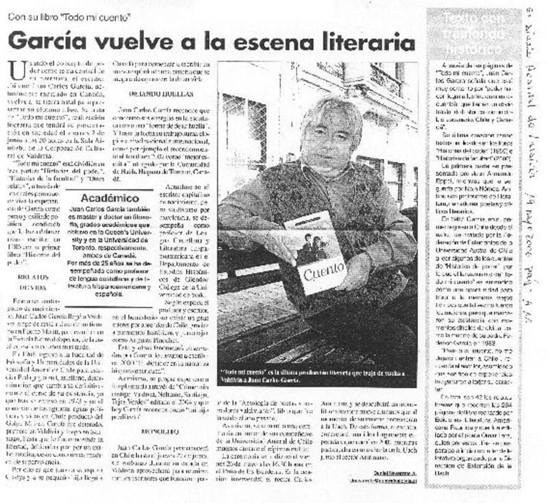 García vuelve a la escena literaria [artículo] Daniel Navarrete A.