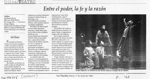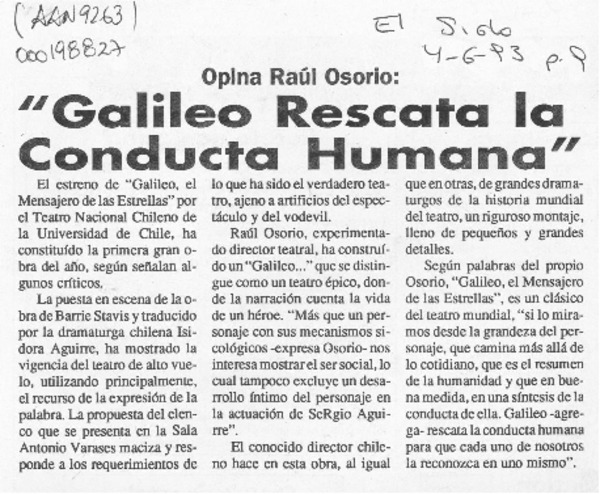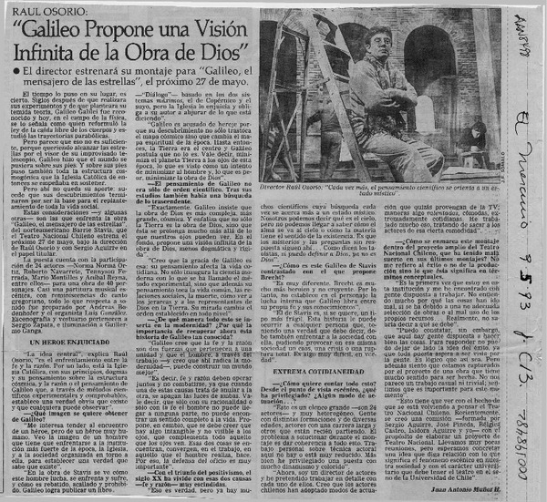 Montaje sobre Galileo estrena Teatro Nacional [artículo].