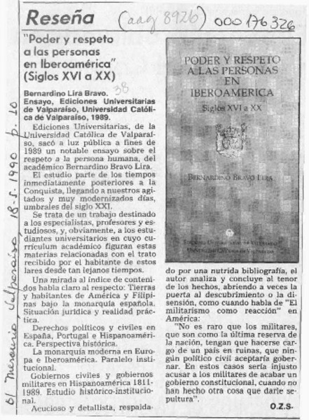 "Poder y respeto a las personas en Iberoamérica" Siglos XVI a XX [artículo] : O. Z. S.