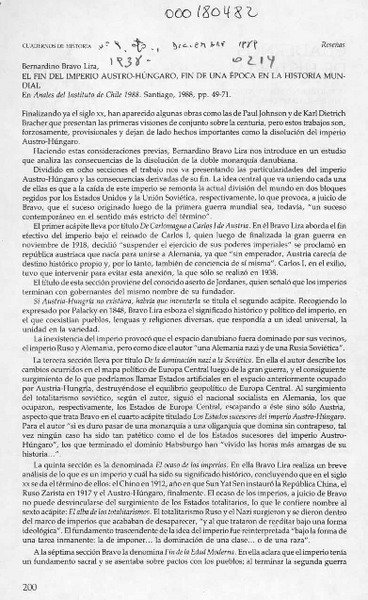 El fin del imperio austro-húngaro, fin de una época en la historia mundial [artículo] Cristián Guerrero Lira.