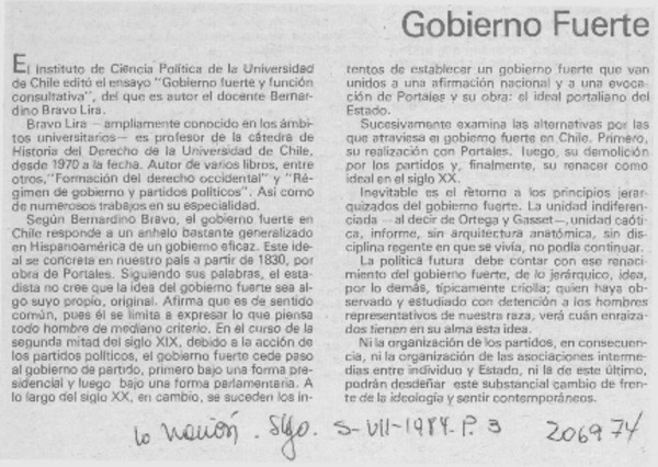 Bravo Lira, Bernardino - Gobierno fuerte y función consultativa