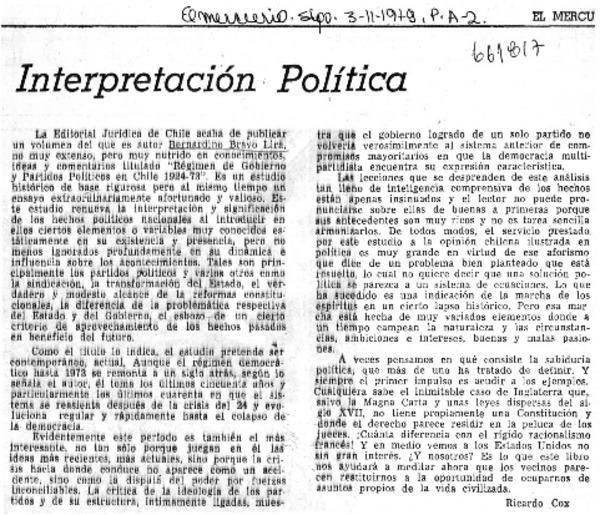 Un estudio político retrospectivo [artículo] Fernando Ríos Ide.