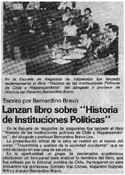 Lanzan libro sobre "Historia de Instituciones Políticas". [artículo]