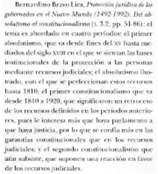 Autores chilenos - Bravo Lira, Bernardino - Protección jurídica de los gobernados en el Nuevo Mundo (1492-1992). Del absolutismo al constitucionalismo