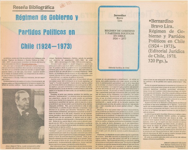 Régimen de gobierno y partidos políticos en Chile (1924-1973) [artículo] Sergio Carrasco Delgado.